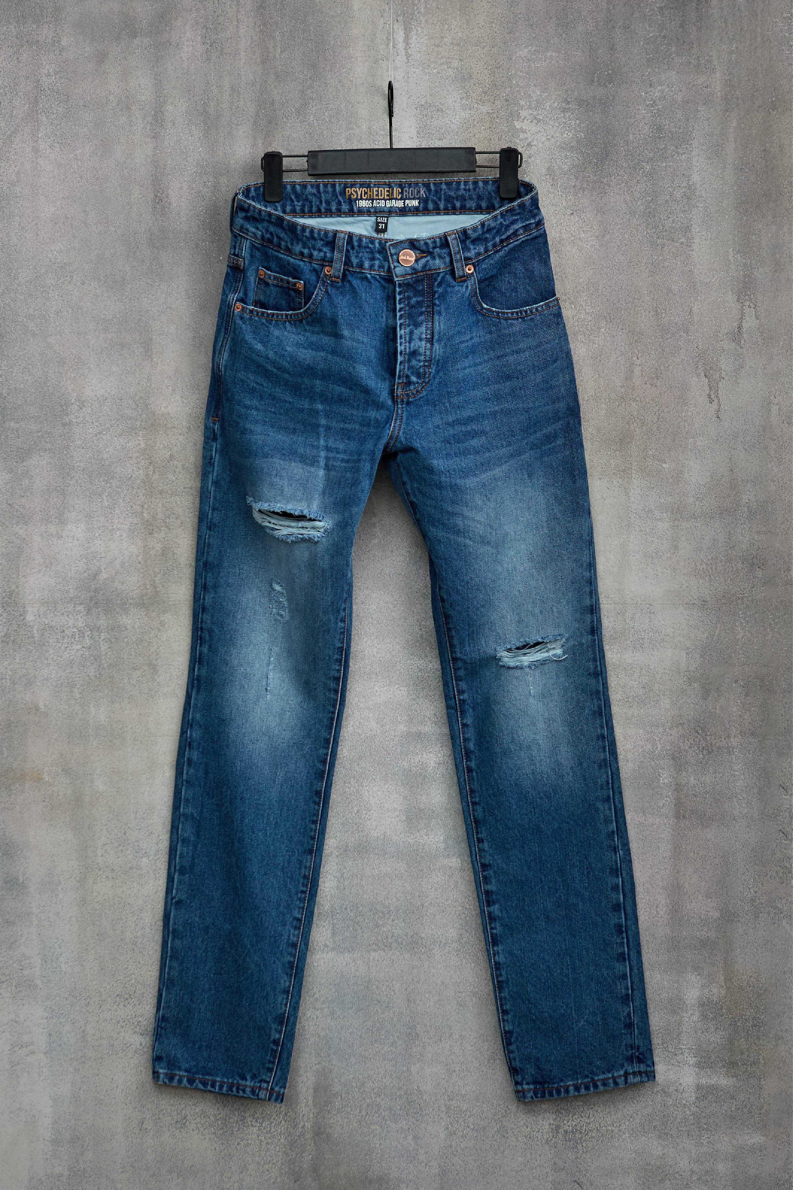 Made from 100% premium cotton, this pair is tough yet breathable. The 13.5 oz denim offers structure without feeling too heavy. In fact, it’s ideal for daily wear across all seasons. Even more impressive is the unique acid spray destroy and rust faded wash, which gives each pair its distinctive vintage tone.