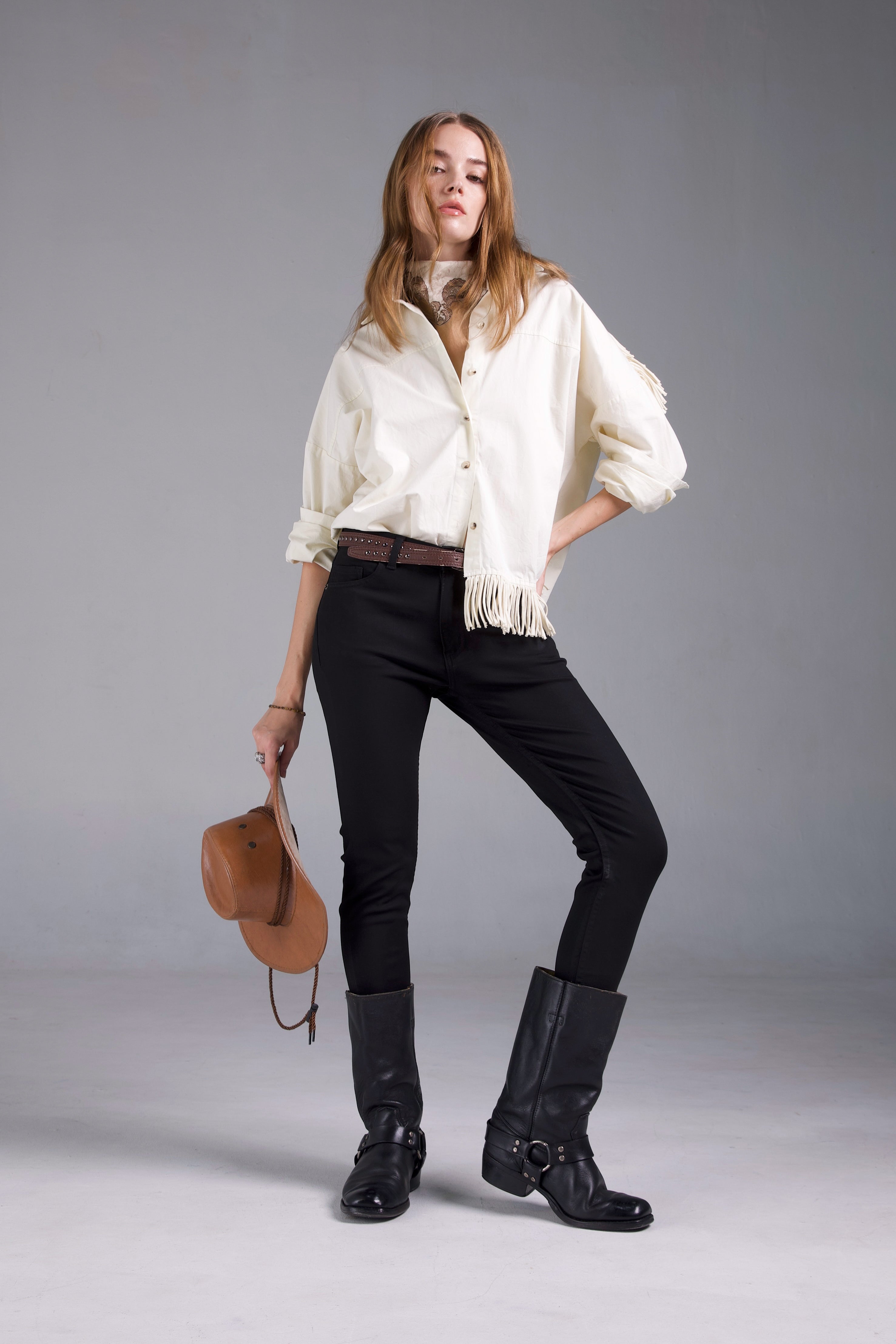 If you’re looking for a sleek and flattering silhouette, the Women Jeans Skinny Fit from the JF-129/BK series is the perfect choice. With a mid-rise waist and a skinny fit cut, these jeans hug your shape while giving you room to move.