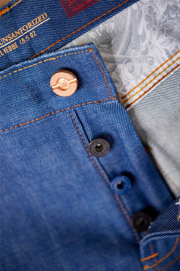 The Metallic Blue Japanese Denim is a standout piece from the Jack Selvedge Collection, perfect for denim enthusiasts. Crafted with 100% Cotton, these jeans feature 13.5 oz Red Selvedge Denim in a striking Metallic Blue tone. Additionally, the specialized Royal Blue dyeing process, developed in a lab, ensures a rich color and lasting durability. Moreover, the Slim-Fit cut offers a modern and versatile look, while the genuine cowhide leather patch enhances its premium appeal over time.